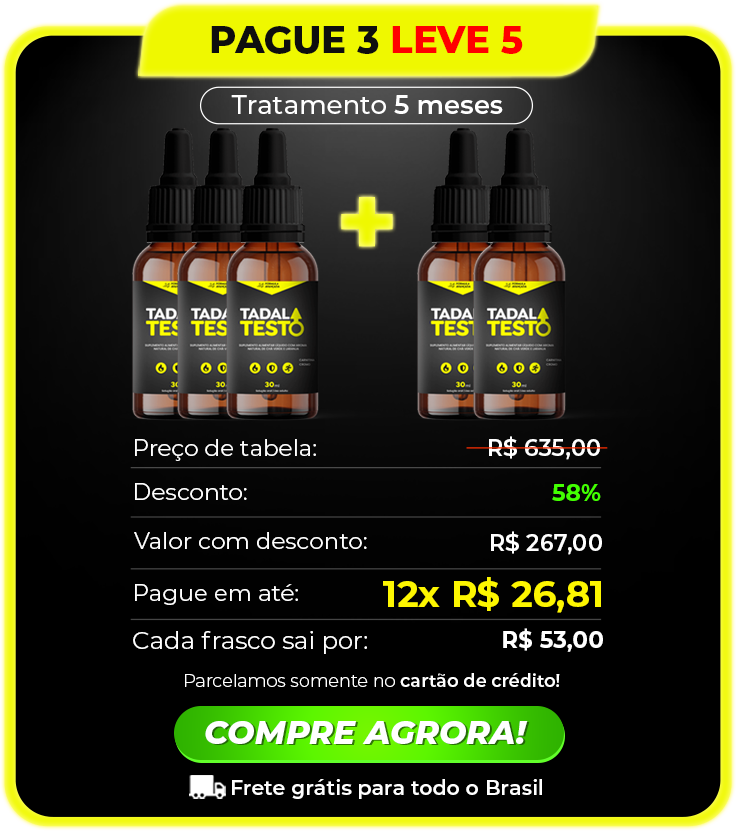 Tadalatesto é um estimulante com ingredientes 100% naturais, que auxiliam na libido, disposição e também em exercícios físicos.